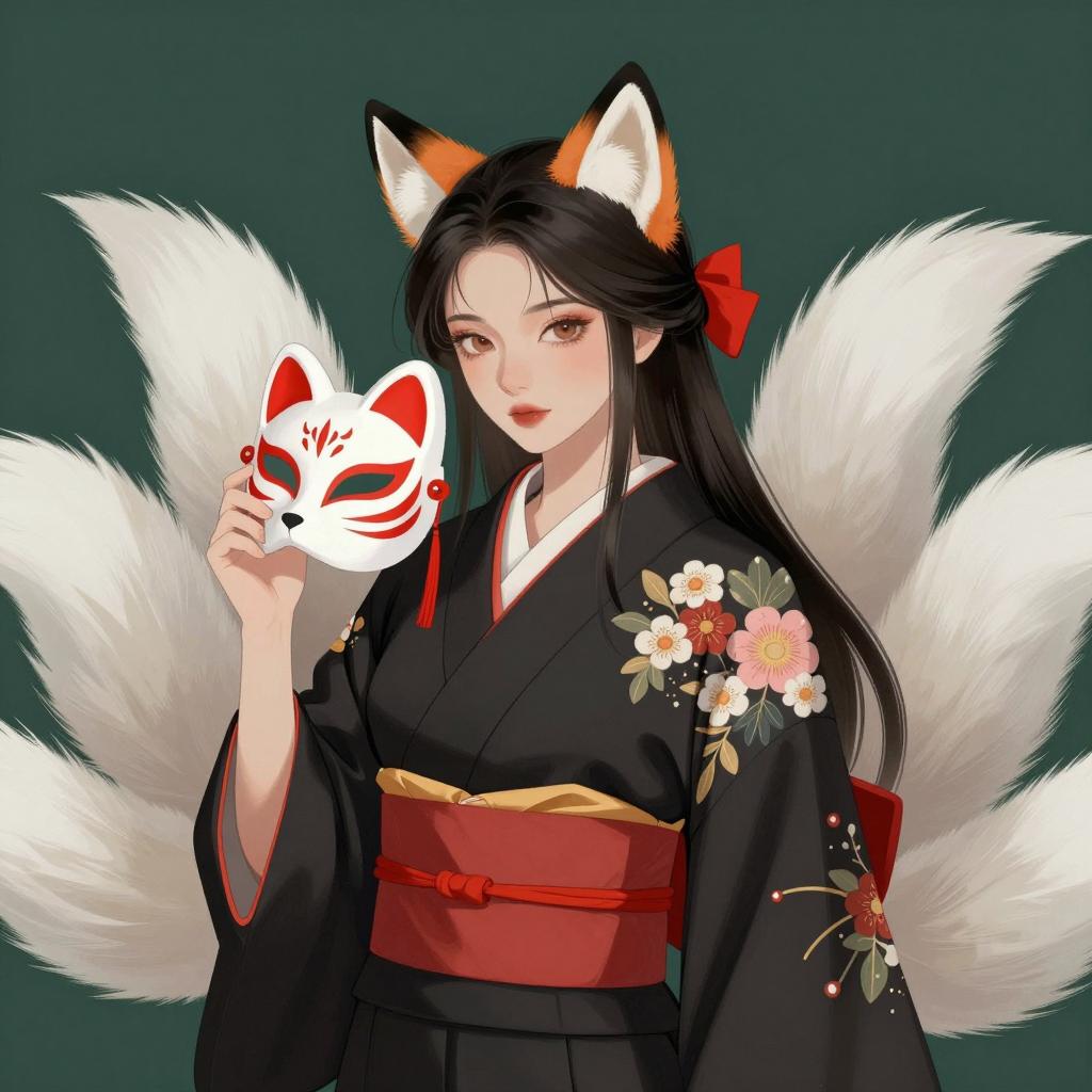Mystical Fox Humanoid in Kimono Art