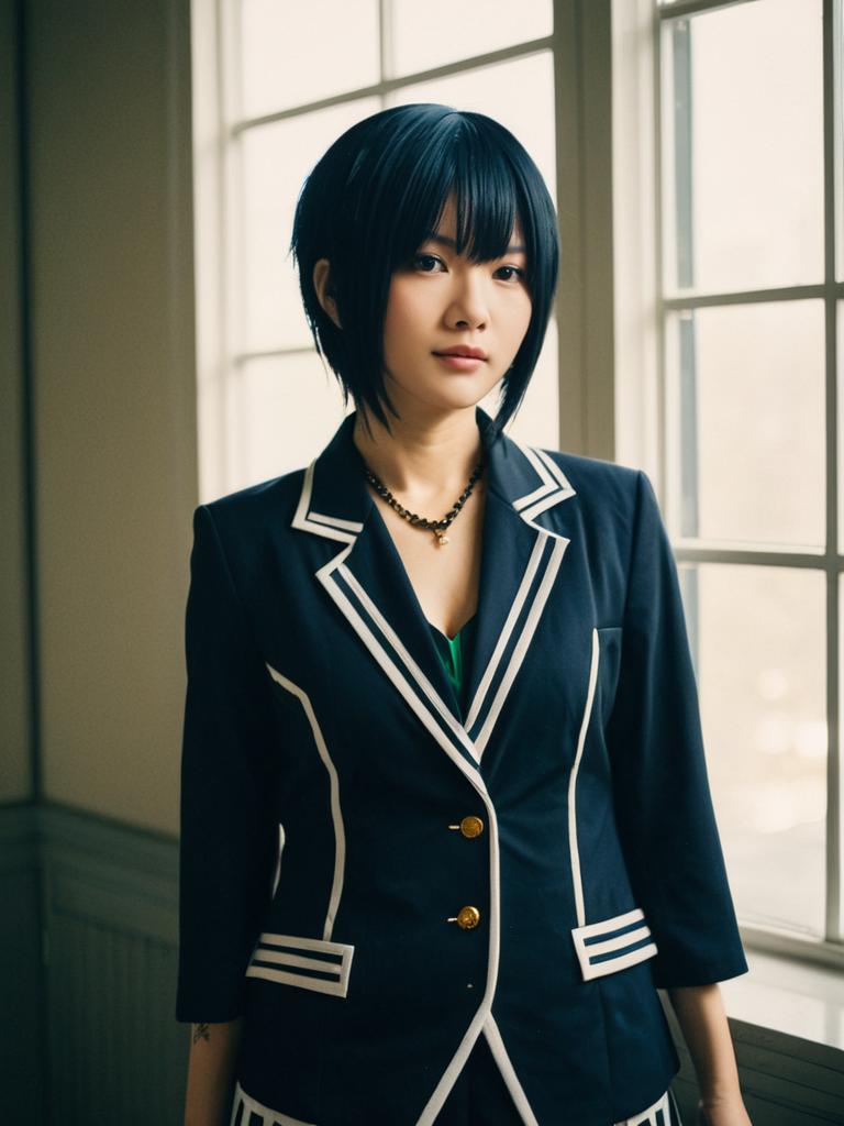 Sexy cosplay woman character wearing Nana Osaki costume. Realistic photo. Jane Doe dressed as Nana Osaki --sref 1390
