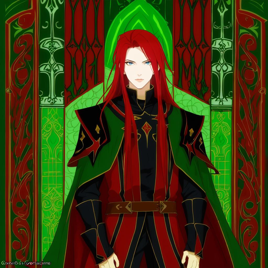 Asch (tales), tales of (series), 1boy, green eyes, long hair, red hair, sidelocks, surcoat, by artist cato (monocatienus), anime