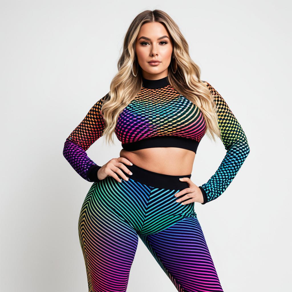 Woman in Neon Rainbow Psychedelic Rave Outfit
