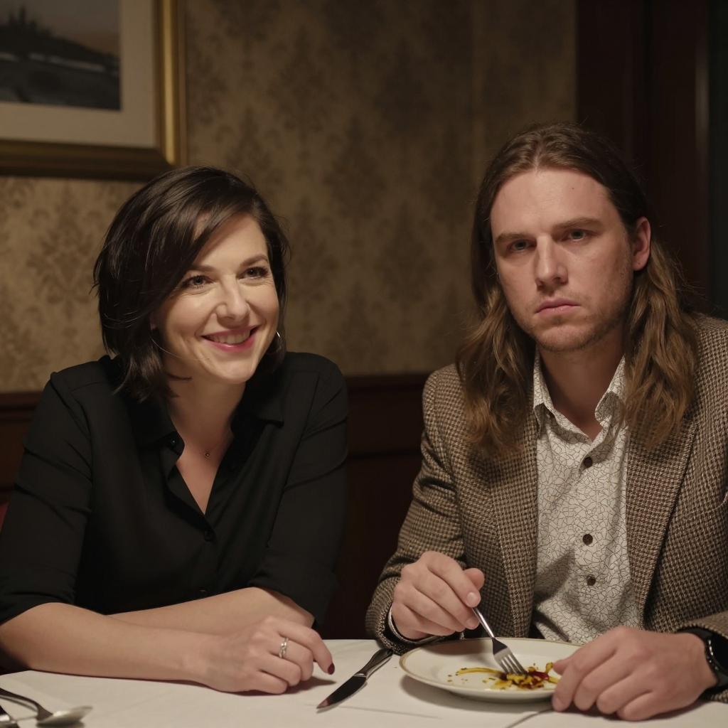 Intimate Dinner Scene with Contrasting Moods