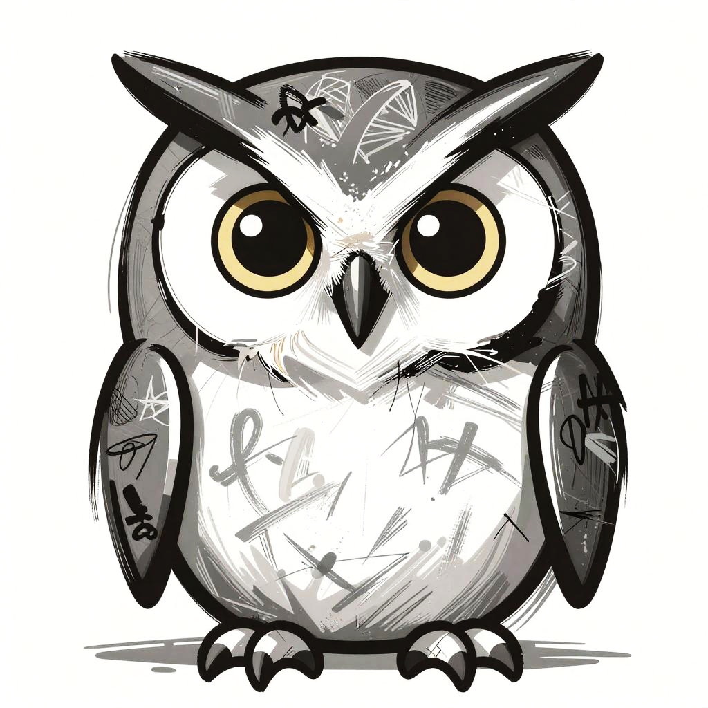 Abstract cartoonish wolf with sharp edges and messy graffiti-style lines, single-color, face loosely inspired by Scarlett Johansson