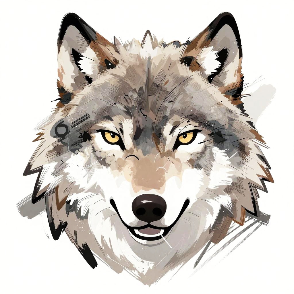 Abstract Cartoonish Wolf Portrait