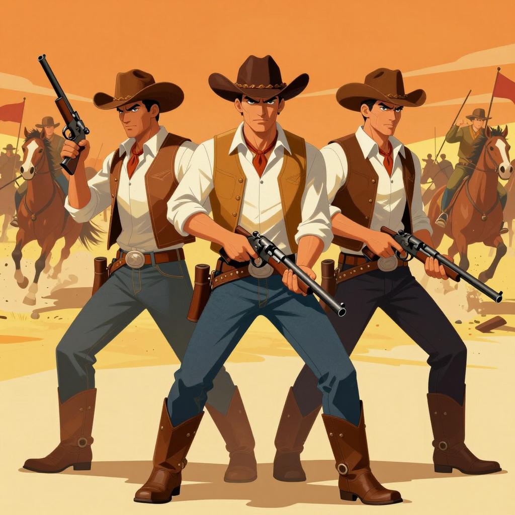 Four men in black tactical gear with green oxygen tanks, standing in a triangular formation. Three in the back, one in front. All have intense expressions, pointing guns forward. Blue gradient background. Digital illustration.