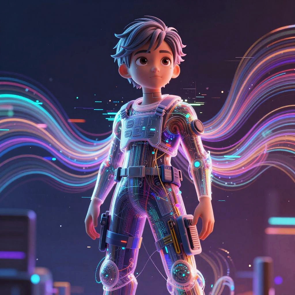 Curly hair animation in a futuristic cyberpunk setting, glowing neon curls with intricate coil patterns, animated with fluid, energetic motion, rich in detail and vibrant neon colors.