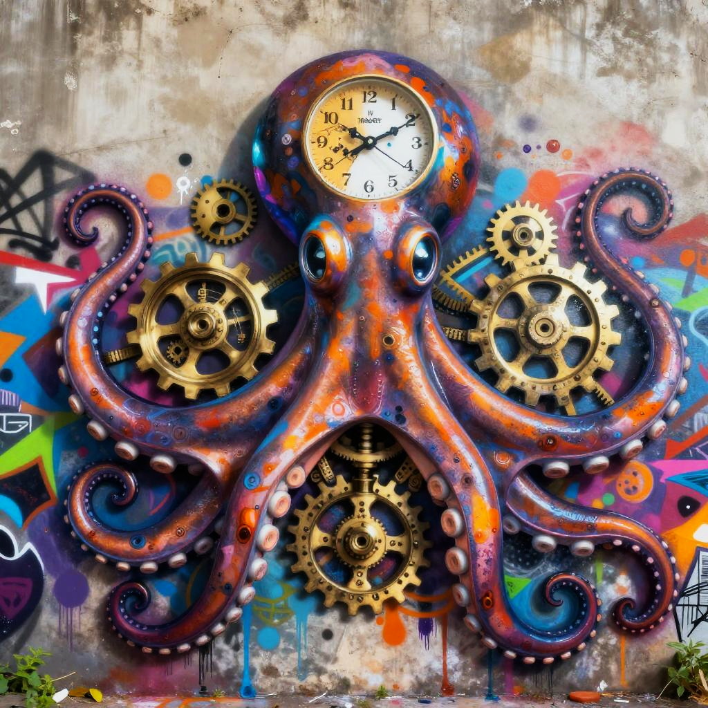 Kaleidoscopic Clockwork Octopus Street Graffiti