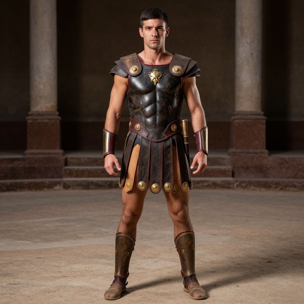 American gladiator outfit, a man in a gladia outfit standing in a ring