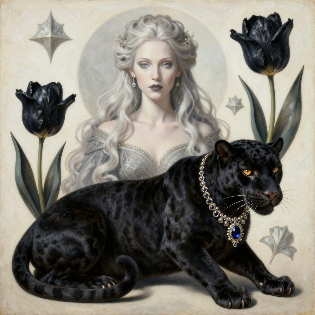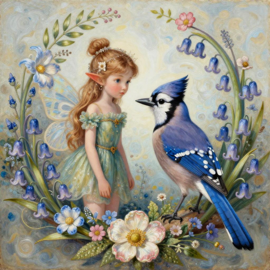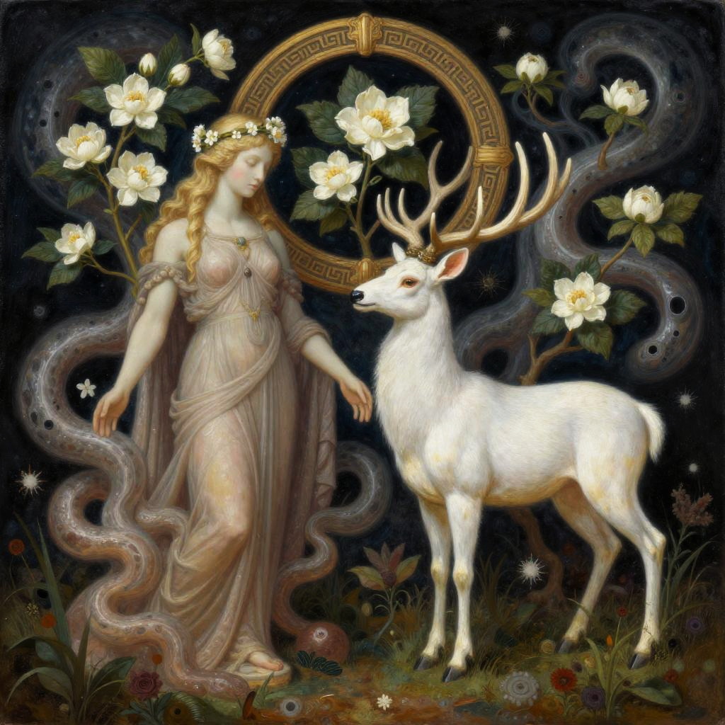 Album Art Cover a girl and a butterfly with a headband and lilies in the style of Catrin Welz-Stein, highly detailed and elegant painting, organic surreal shapes, great composition, intricate detail, hyper detailed, hypermaximalist