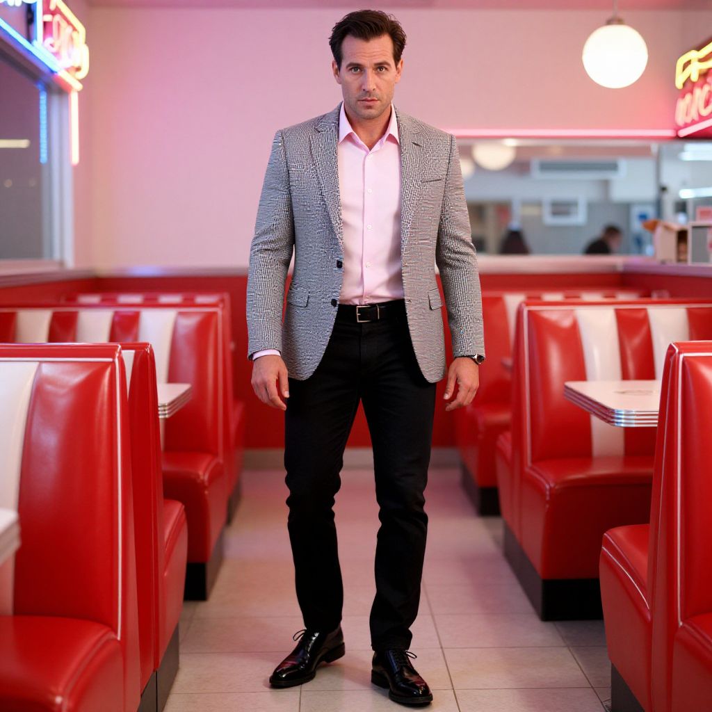 Man in Vintage Diner with Neon Glow