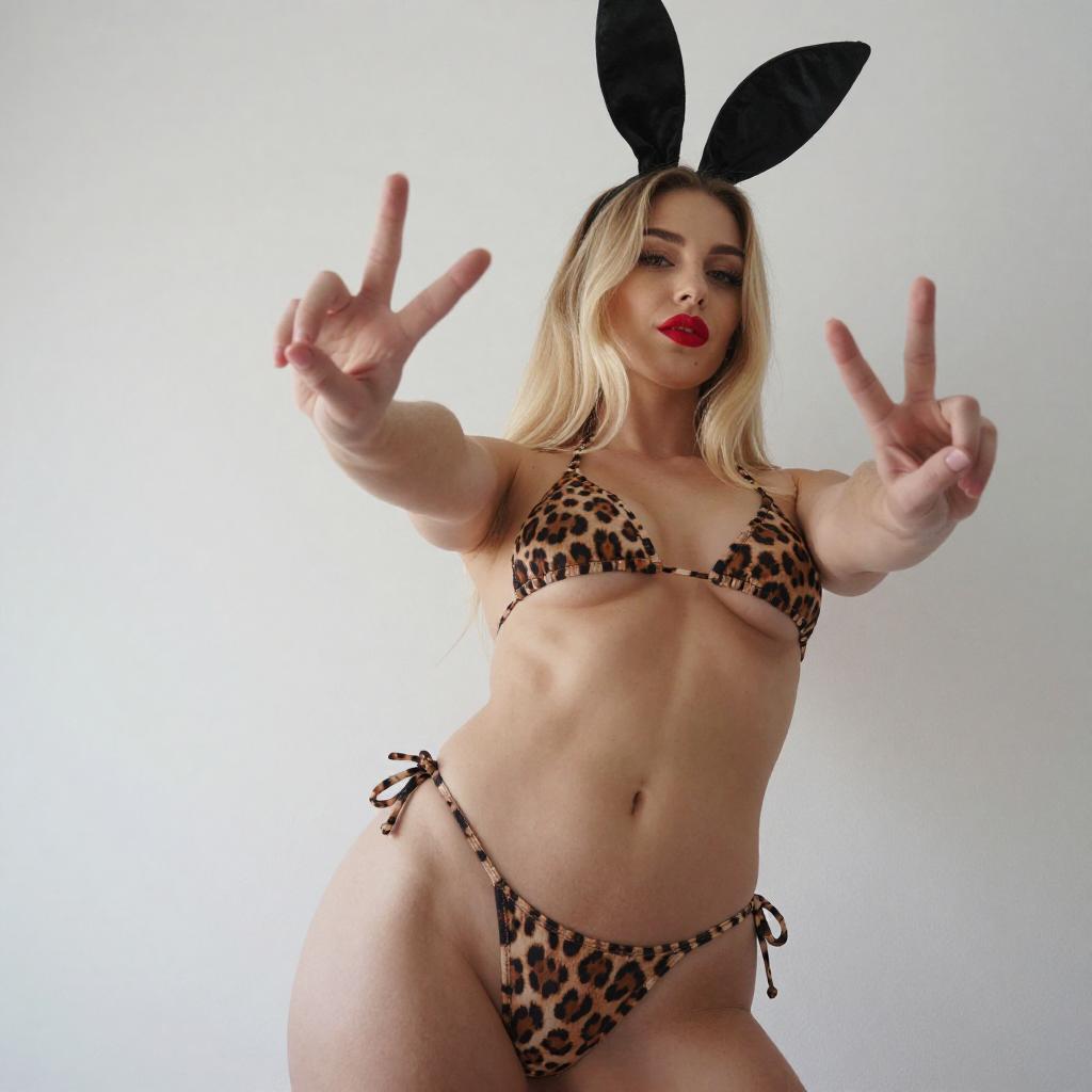 Blonde Woman in Bunny Ears Pose
