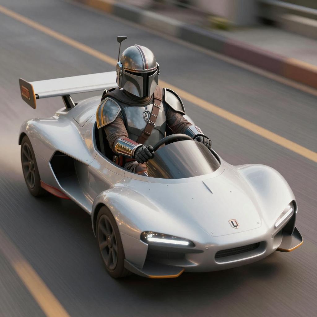 Ttdddd, mandalorian, (driving podracer:1.3), ultra high quality render, highly intricate, 8k, cinematic, volumetric lighting, micro details