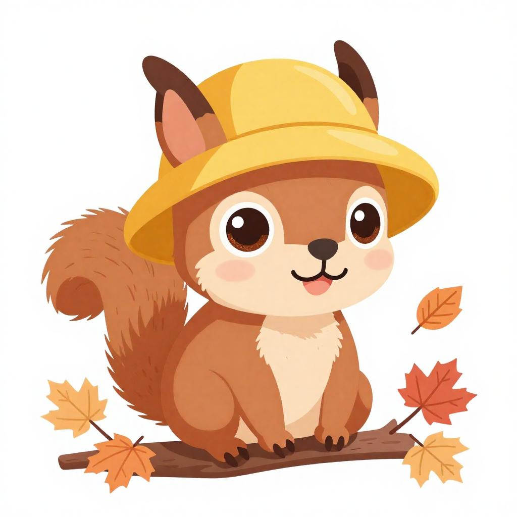 Cute Baby Sloth with Green Hat Sitting on Branch