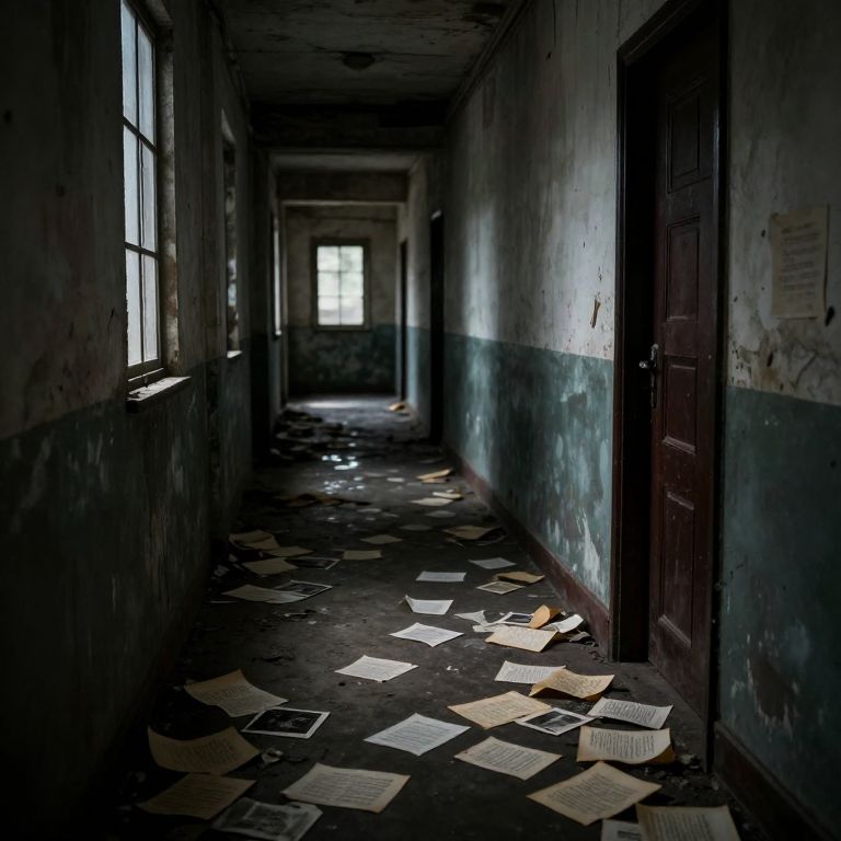 In a dimly lit corridor where whispers of abandonment linger, scattered pages of light-scripted memories evoke a haunting symphony of loss and longing, as if an invisible civilization left behind their silent pleas in the forgotten echoes of time.