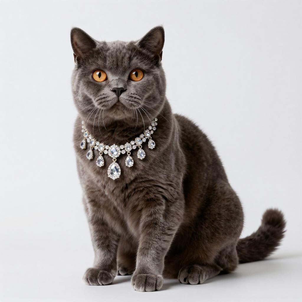 British Shorthair Cat with Diamond Necklace