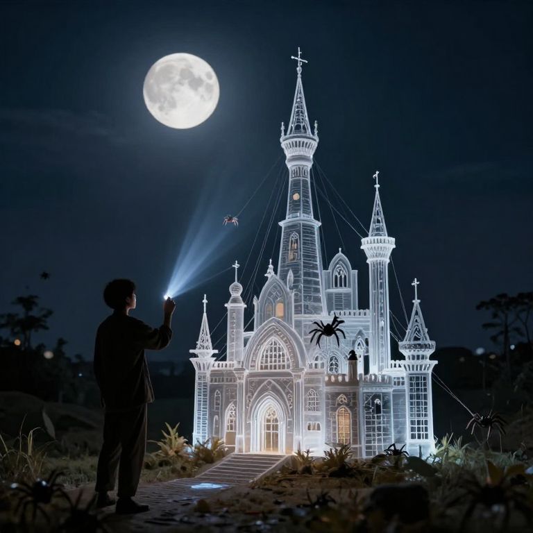 An artist paints with light beams tethered to invisible spiders, crafting ephemeral palaces visible only under moonlight’s angle.