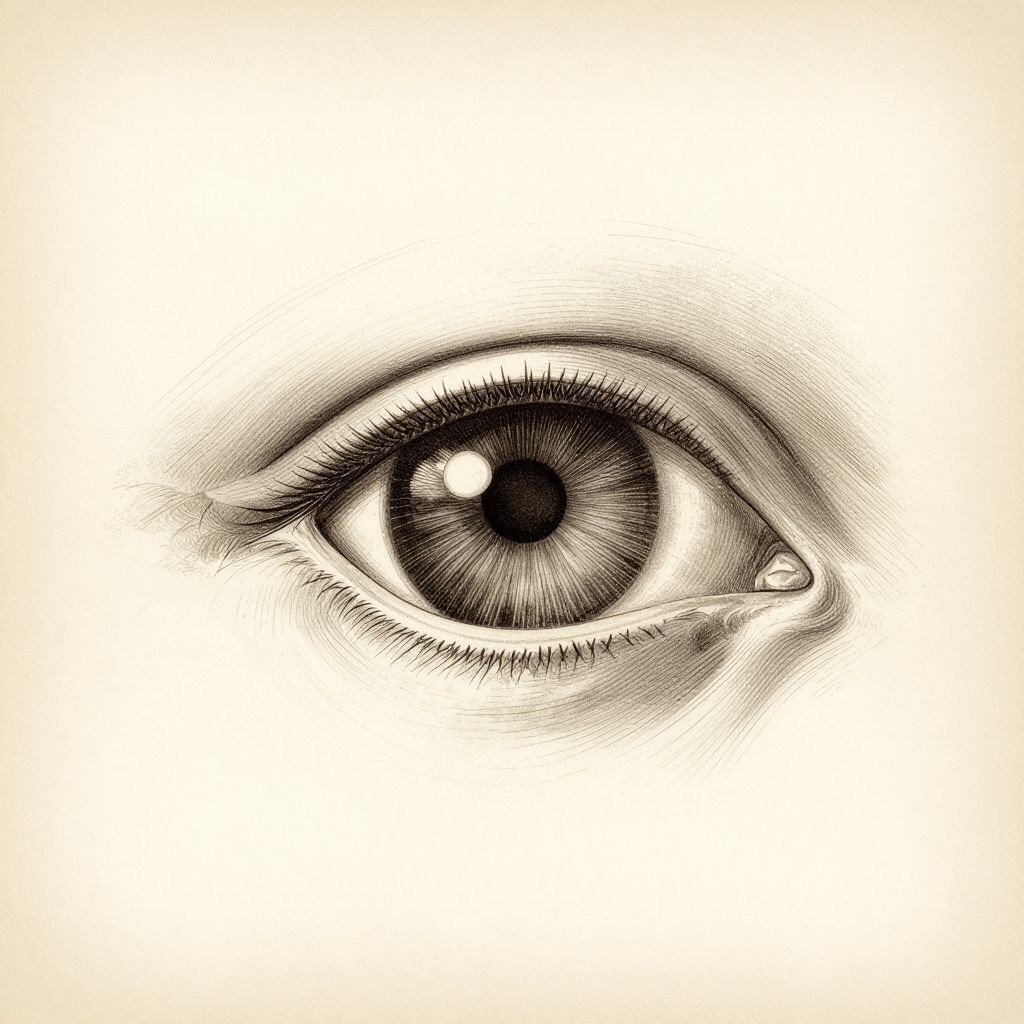 Horse eye diagram vintage anatomical drawing, sepia tones and aged paper texture, finely detailed sketch, classical scientific illustration style, precise shading and labeling