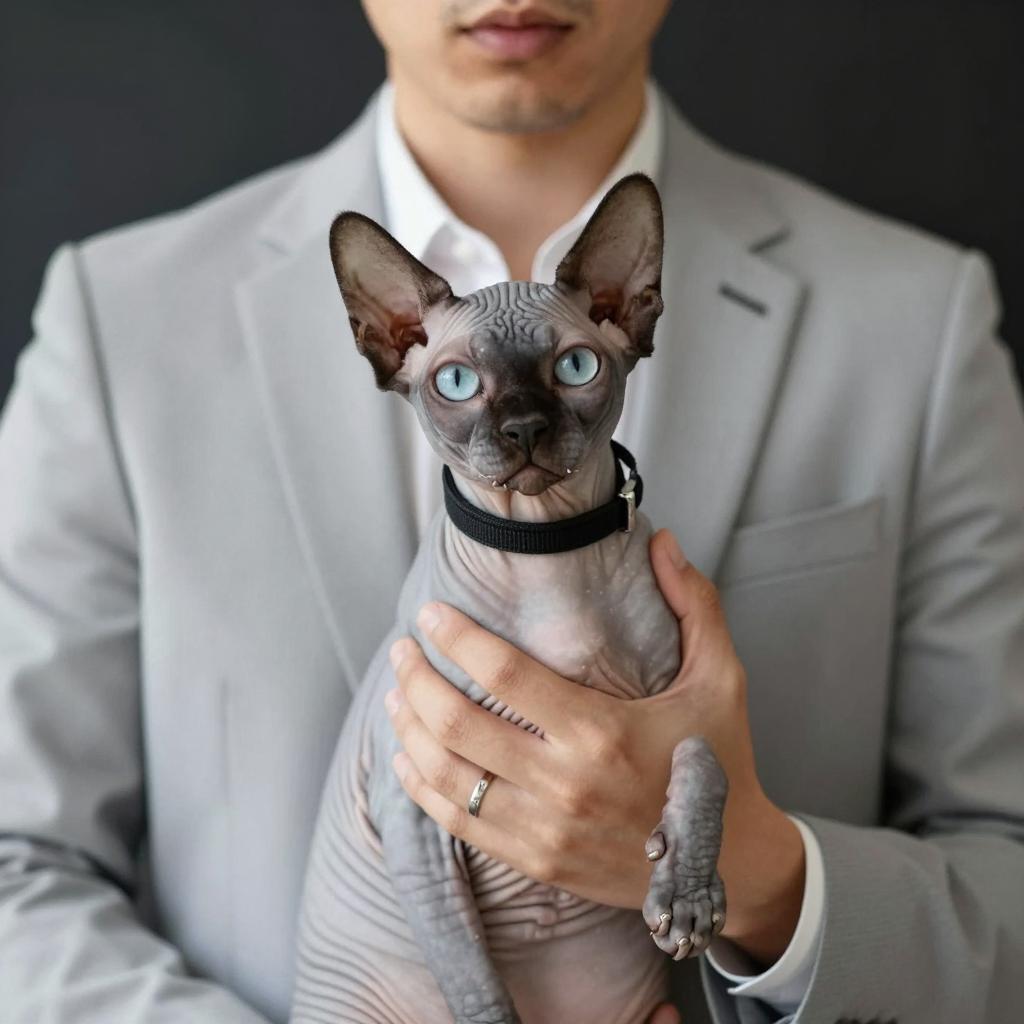 Man in Suit with Sphynx Cat Portrait