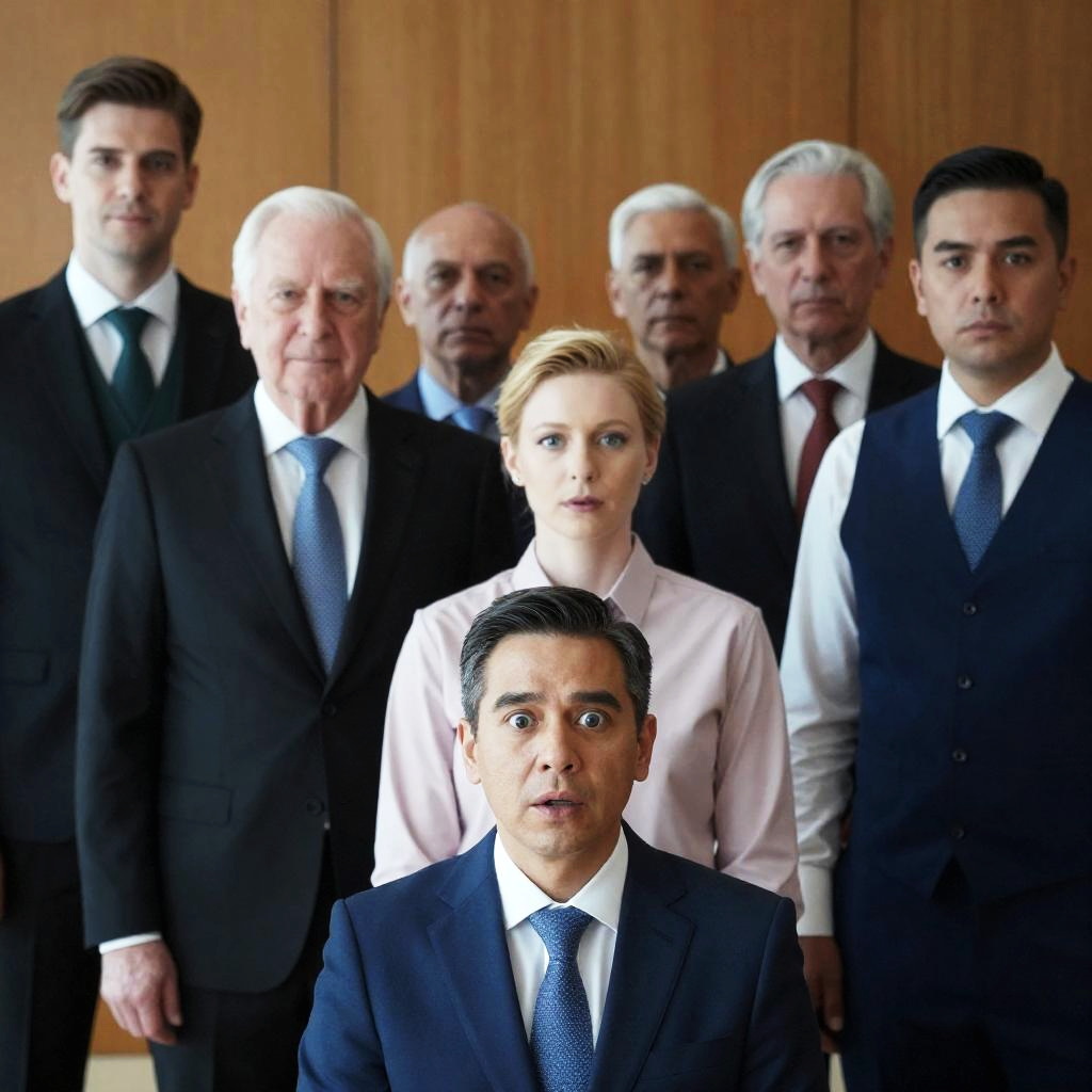 Formal Group with Surprised Man Focus