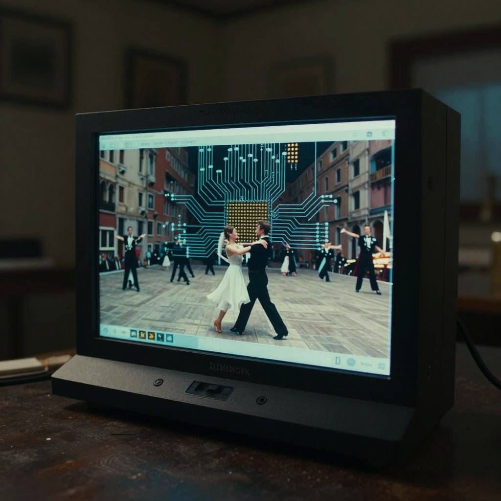 Nighthawks featuring a VR headset designed in a detailed, printed circuit board style with nanochip circuits. The scene incorporates a gritty, cinematic aesthetic influenced by Cri Film style.