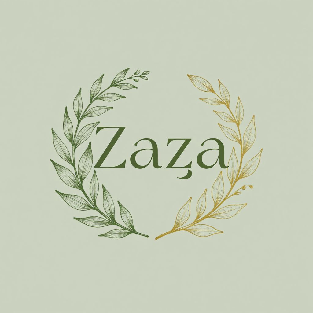 Zaza logo inspired by natural elements, combining leaf motifs with elegant typography, earthy green and gold tones, delicate and organic feel, perfect for eco-friendly or wellness brands, hand-drawn style with digital refinement