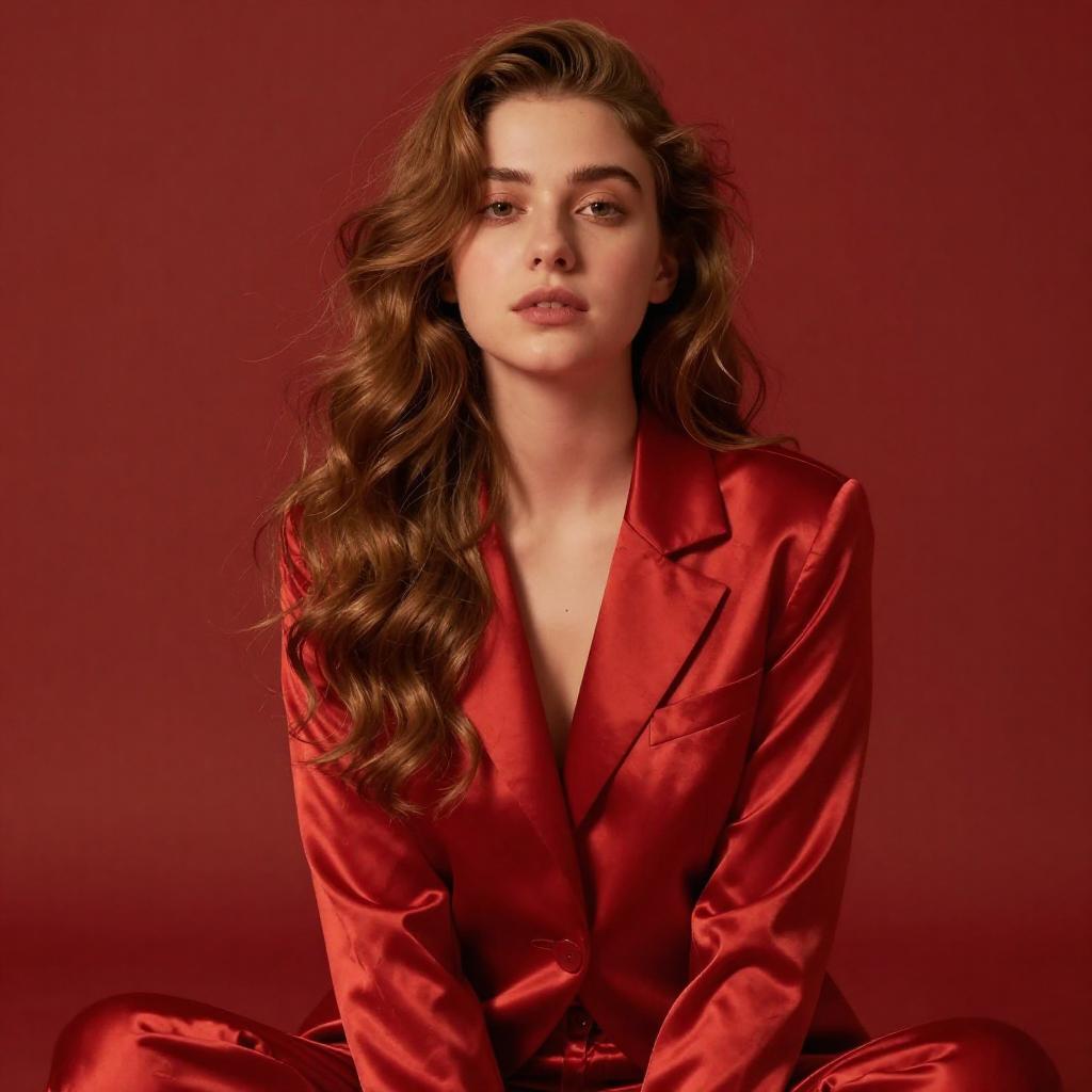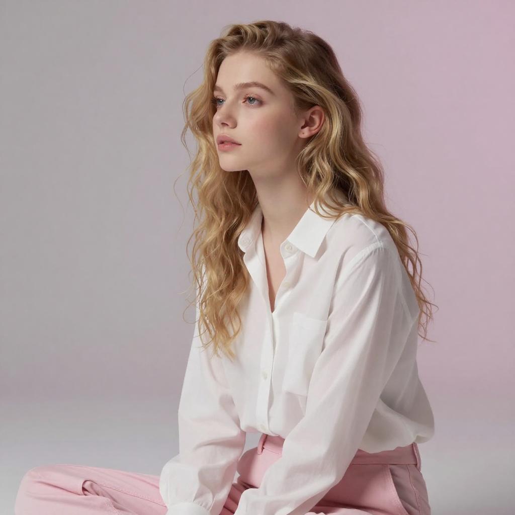 Young Woman on Pink Quilted Bed