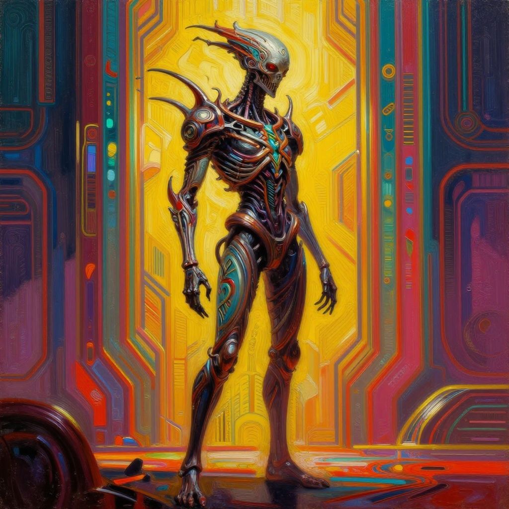 Master shot, sharp focus Hyperdetailed, dynamic lighting, dramatic shadows, high detail, art deco style, fine details, oil painting, vibrant color palette, fantasy, surreal, digital rendering of ((reference of the movie "hell raiser" PIN HEAD type, full body standing from a side, very intricated)) in an otherworldly futuristic setting, surreal lighting, cinematic composition, digital masterpiece by H.R. Giger and ZdzisBaw BeksiDski, 4k resolution, highly atmospheric. concept art 8k resolution trending on Artstation Unreal Engine 5" detailed sharp focus photo distance fantastical intricate detail bright bold colours horror abstraction sci-fi concept art 8k resolution trending on Artstation Unreal Engine 5"