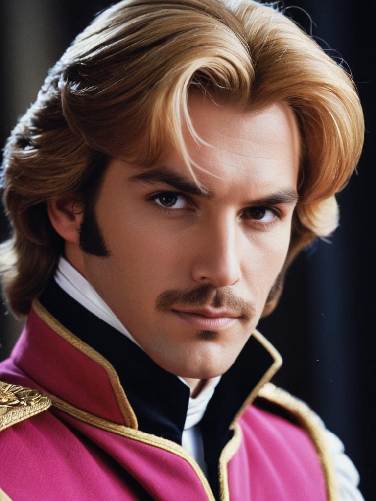 Man in Prince Adam Costume, close-up detailed headshot with styled hair