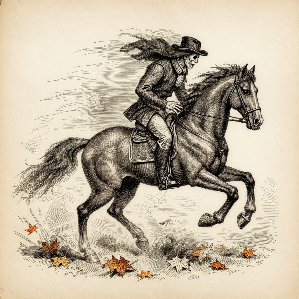 Headless Horseman Sketch with Autumn Leaves