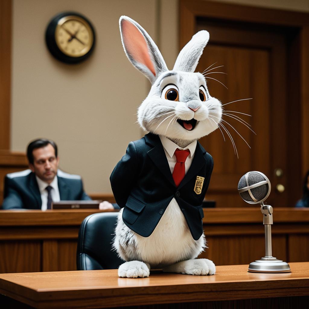 Animated Rabbit Attorney in Courtroom