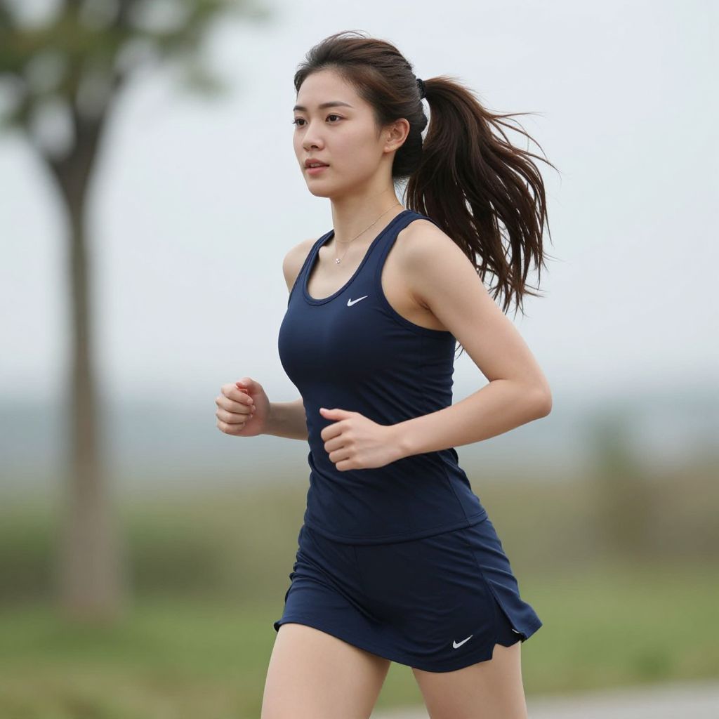 Realistic Portrait of Woman Running Outdoors
