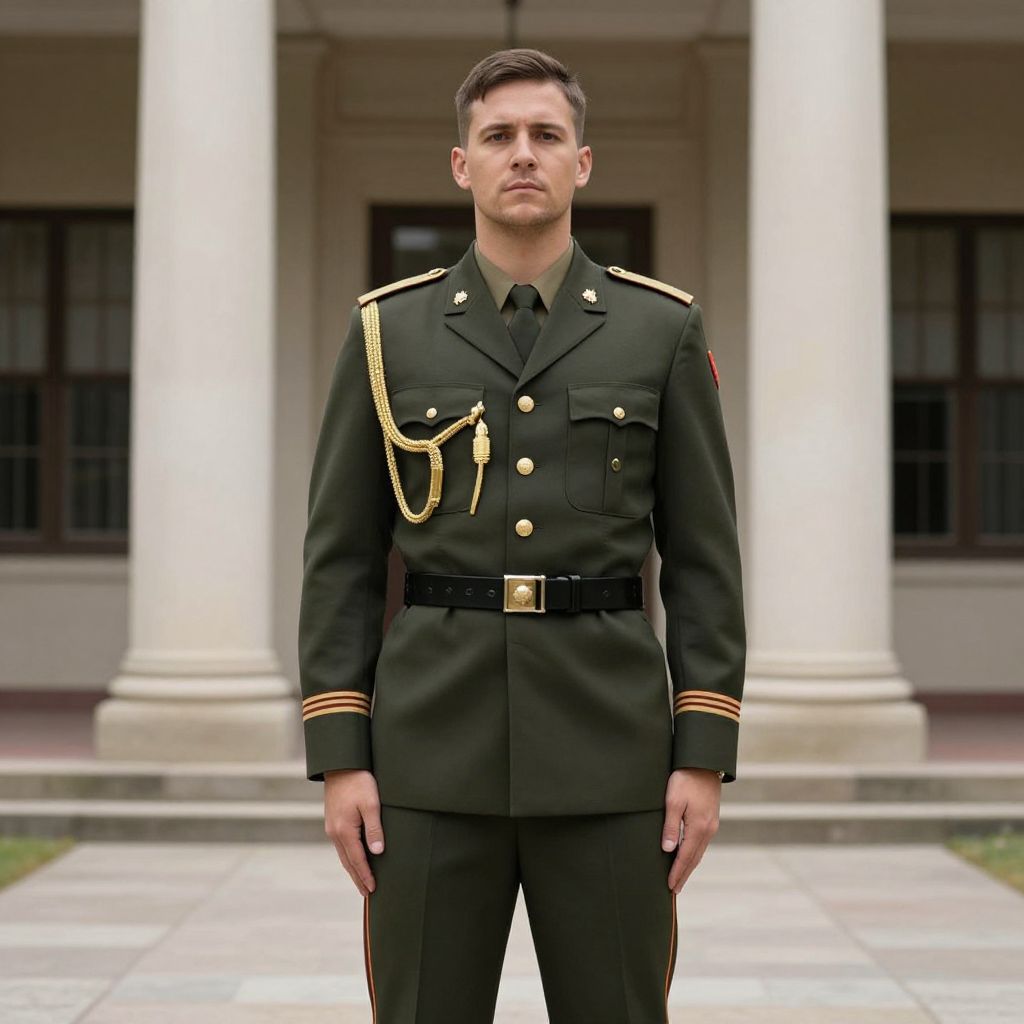 Man Military Costume, man in uniform standing in front of a building
