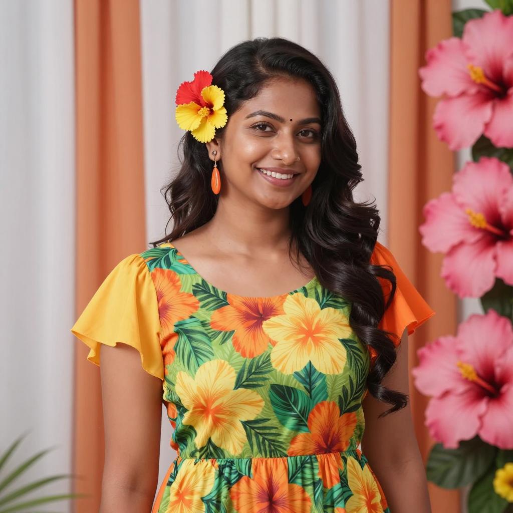 Elegant Asian Woman in Vibrant Kaftan
