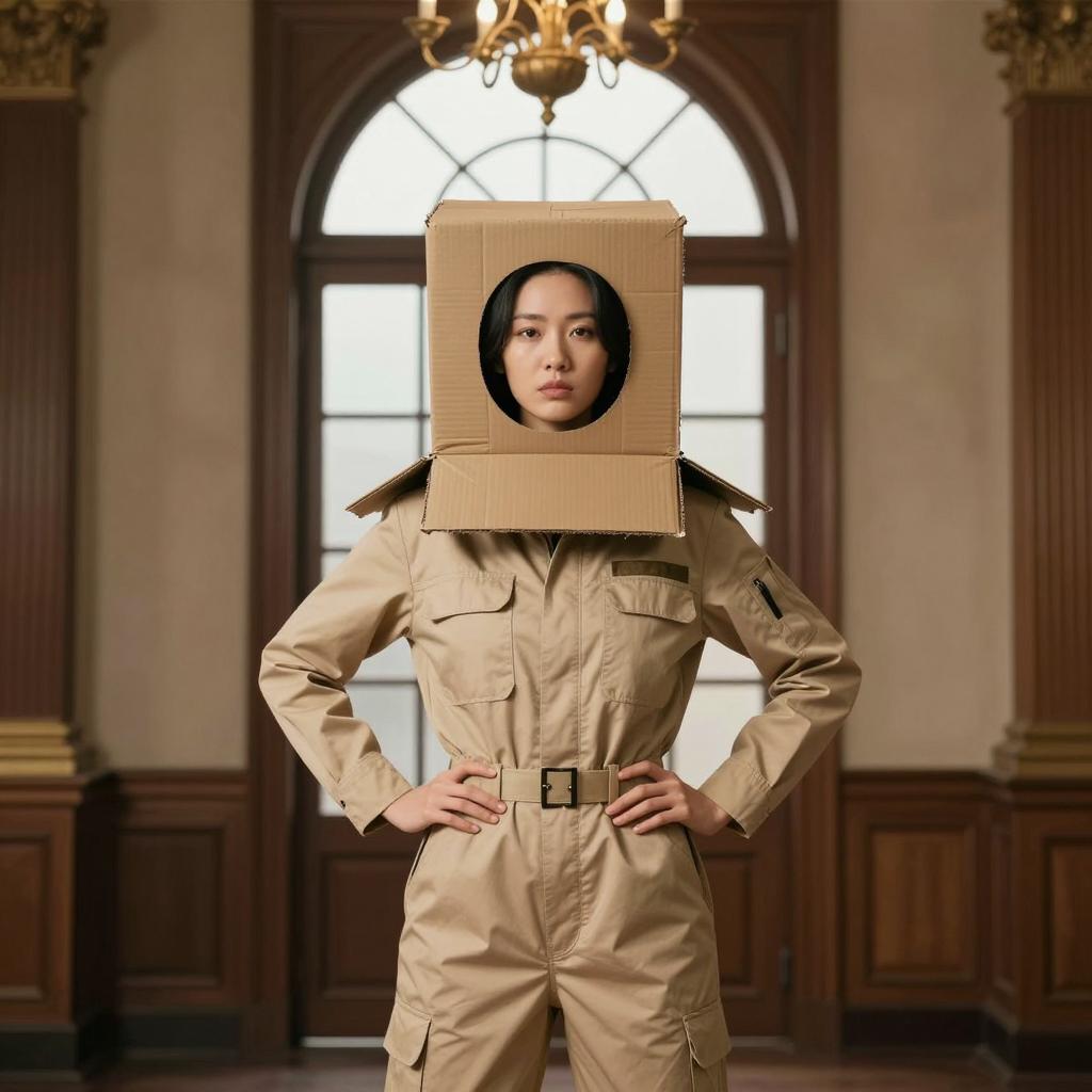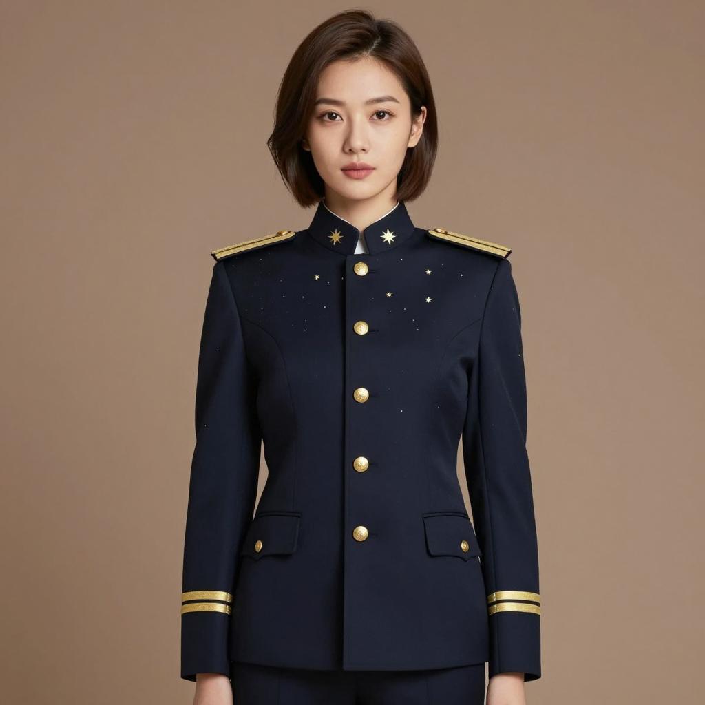 Space odyssey costume, photorealistic portrait of a young woman with short black hair, wearing a military-grade grey flight suit, black and silver oxygen mask with a transparent visor, headset, and multiple cables, focused expression, desert background with blurred horizon, daylight, detailed ures on suit and equipment, realistic lighting, serious and determined mood, "Serca" on suit, semi-profile view, centered, realistic style
