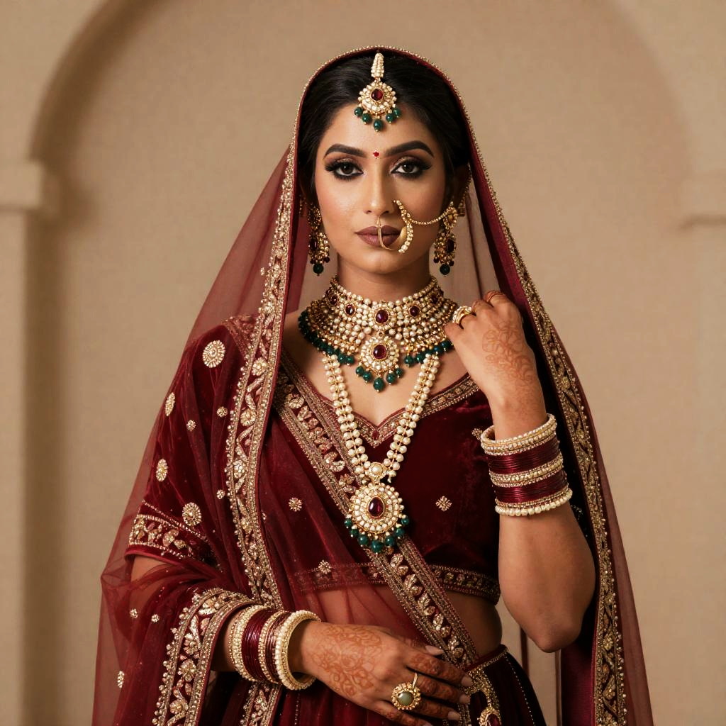Shangaan Wedding Attire, bride in traditional indian dress with jewelry and jewelry