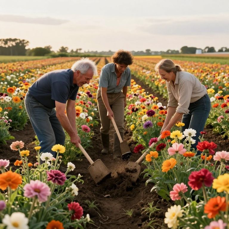 Farmers cultivate emotions in glowing soil, plowing fields of outrage, joy, and nostalgia that physically bloom into vibrant, sentient blossoms.