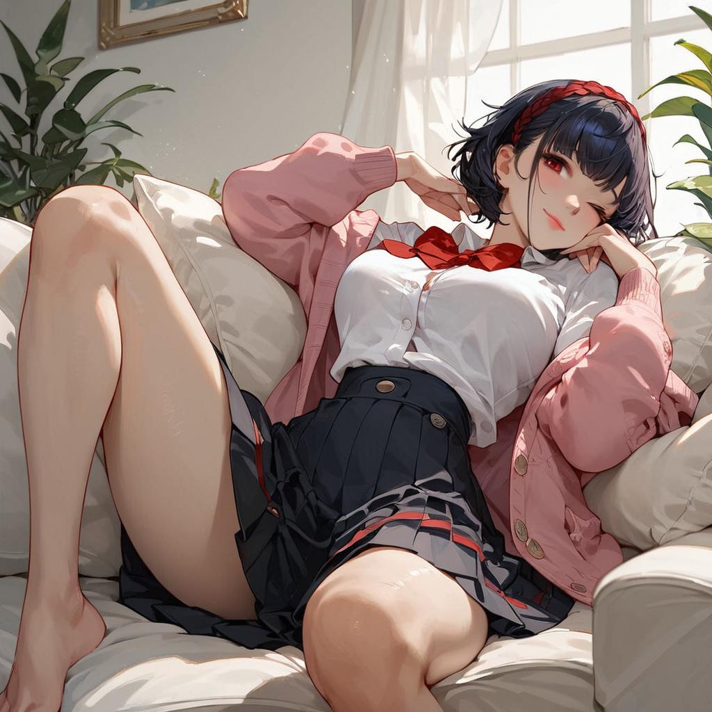 Score_9, score_8_up, score_7_up, score_6_up, score_5_up, score_4_up, source_anime, jabami yumeko, school uniform, blunt bangs, red blazer, black hair, black skirt