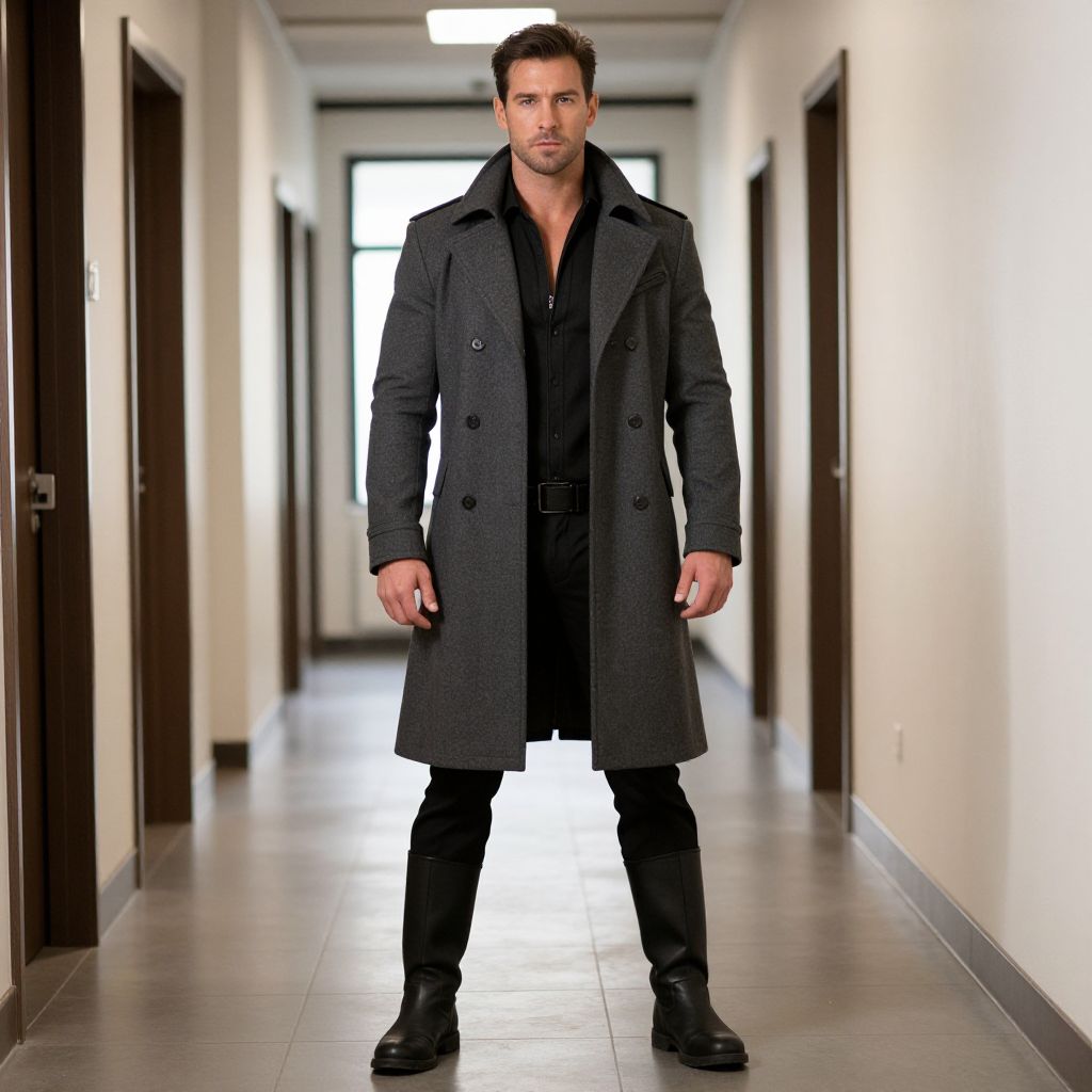 Man Wwe Mankind Costume, a man in a long coat and boots standing in a hallway