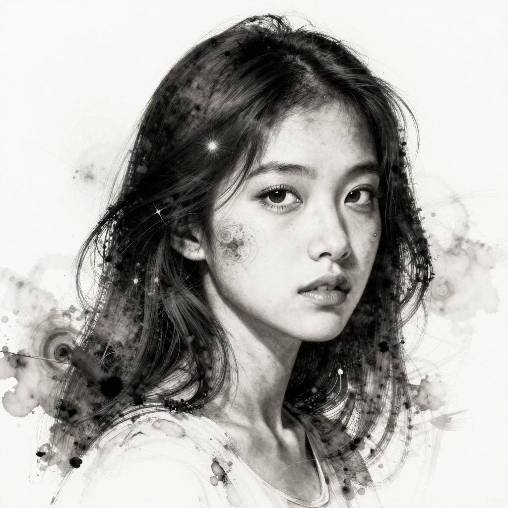 Fractal Ink Wash Girl Masterpiece