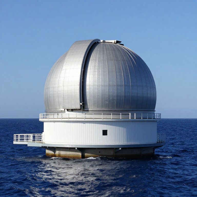 Specular Map An astronomical observatory at the edge of the ocean, half-emerged in the water, in the manner of Ernst Haeckel,