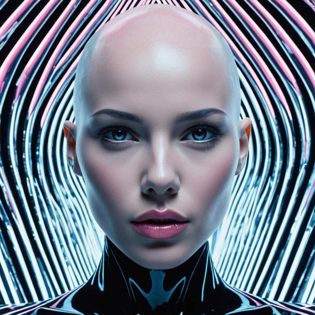 Cybernetic Futuristic Woman with Neon Circuit Tattoos