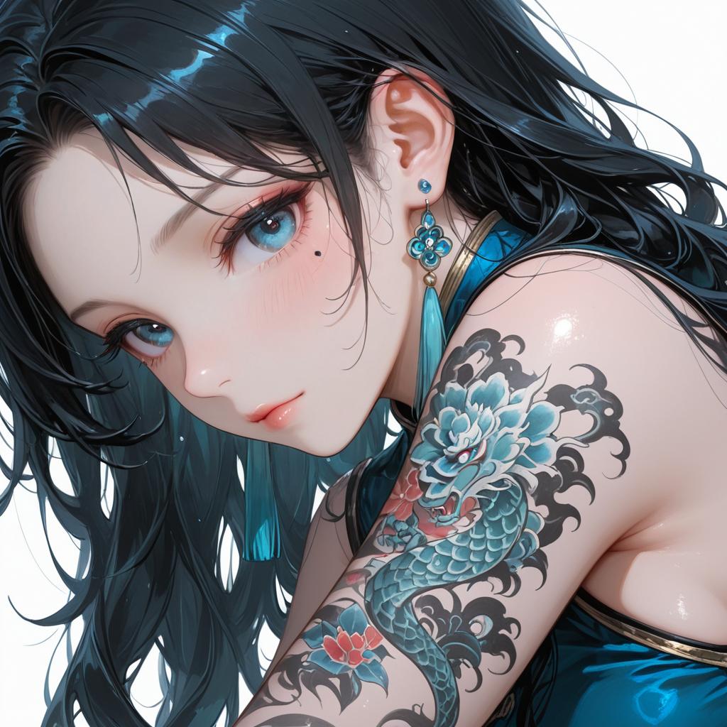Blue-eyed Chinese Beauty with Tattoos