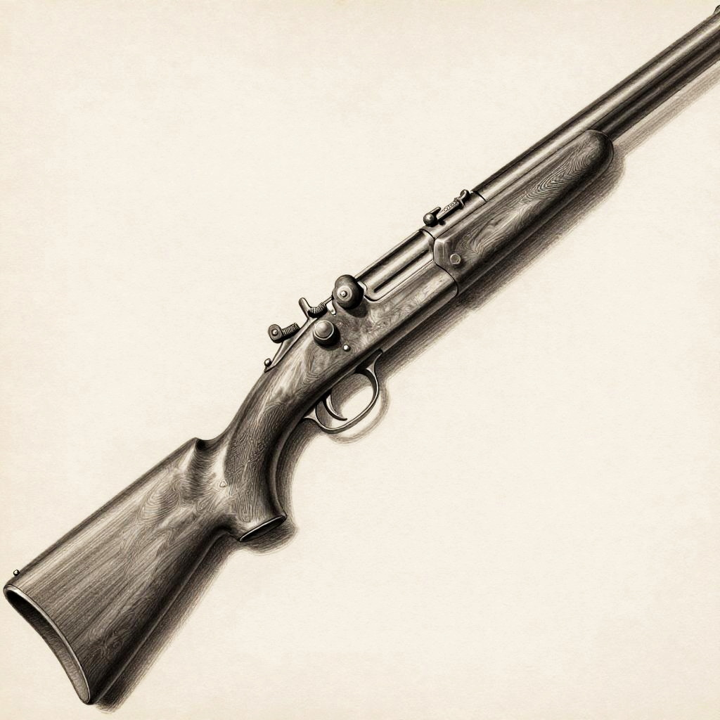Rifle sketch, detailed pencil drawing of a vintage hunting rifle on textured parchment background, intricate mechanics and wood grain, realistic shadowing and highlights