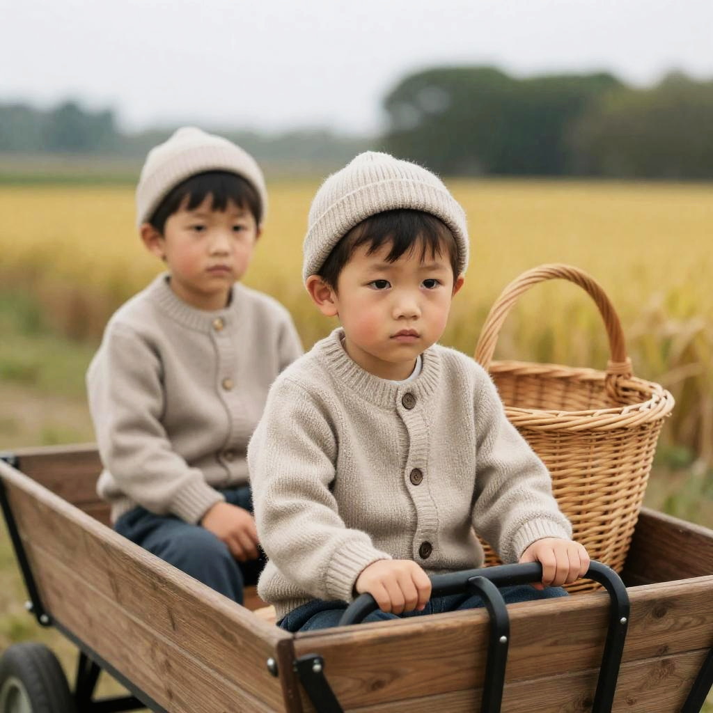 Photograph of a family in a forest. Father in green shirt and black hat, embracing two children. Older child hugging from the left, younger child hugging from the right. Bright green foliage background, sunlight filtering through trees.