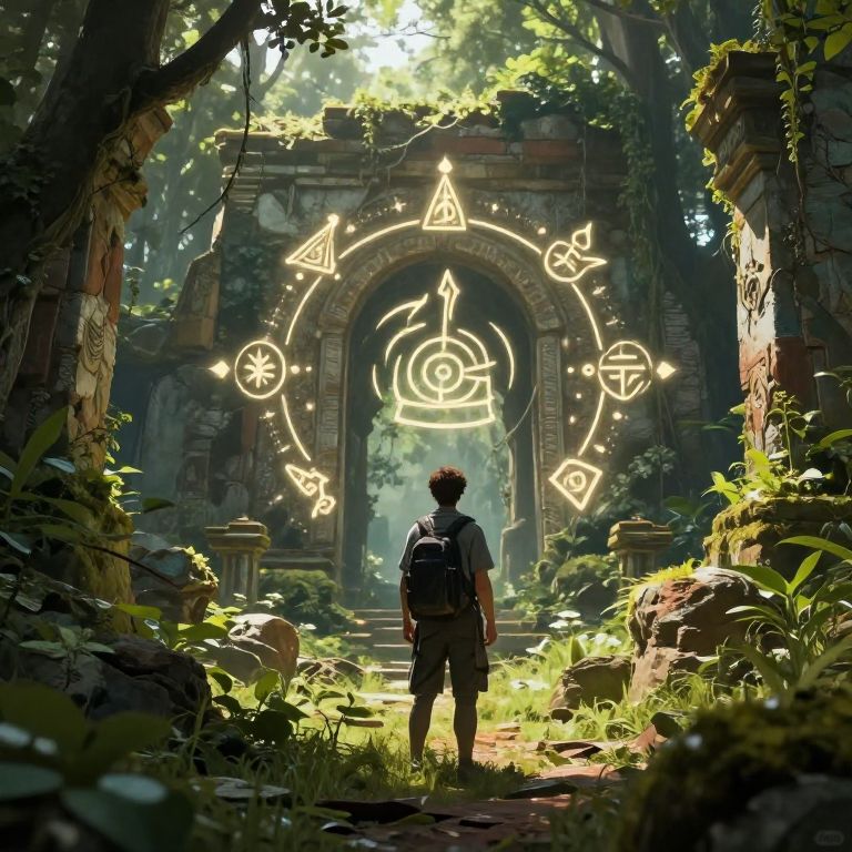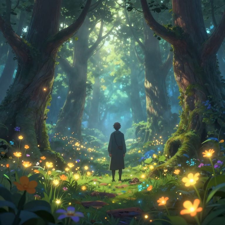 A young explorer standing beneath a colossal glibatree, awe-inspiring scale, bark glowing faintly with runes, mystical forest setting, dappled sunlight through leaves, fantasy illustration, dynamic composition