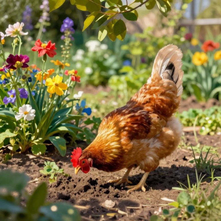 Joyful Hen in Vibrant Garden