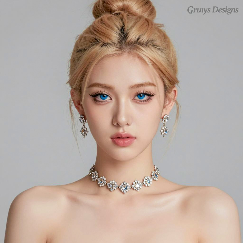 Close-up illustration of a woman with blue eyes and blonde hair, her face partially hidden behind a white cat with blue eyes. The cat's nose is pink, and it is resting its head on the woman's cheek. The woman's eyes are wide and intense, while the cat's eyes are also wide and reflective. The cat's fur is smooth and white, contrasting with the woman's light skin. The illustration has a realistic style with detailed ures.