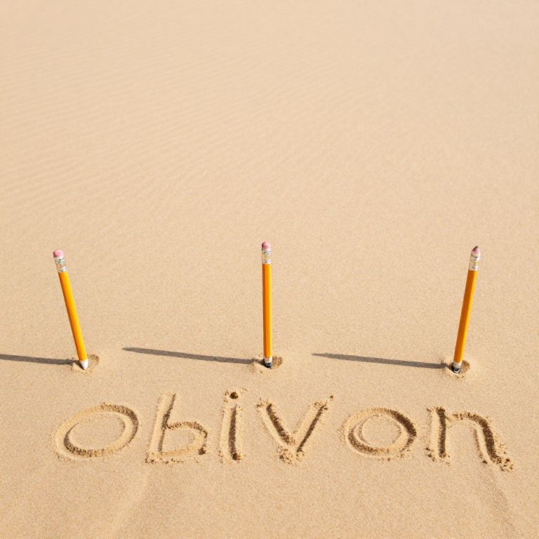 In an endless expanse of sand, pencils rise like silent sentinels, their tips etching stories into the air while erasers whisper secrets back to the earth, embodying the eternal dance between creation and erasure, hope and oblivion.
