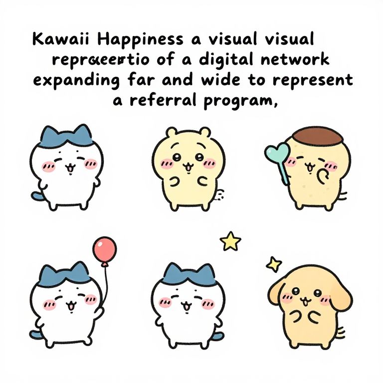 "Kawaii Happiness a visual representatio of a digital network expanding far and wide to represent a referral program,"