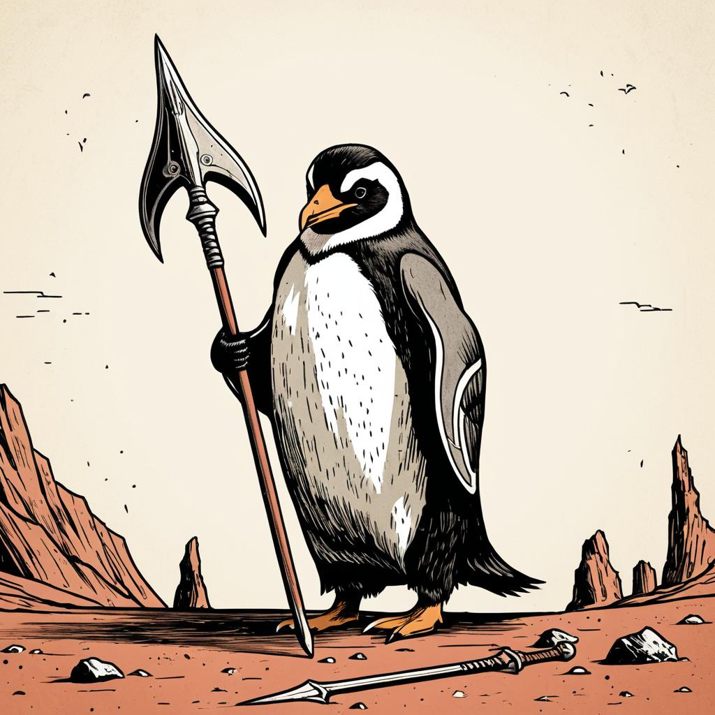 Stylized Penguin Warrior with Halberd