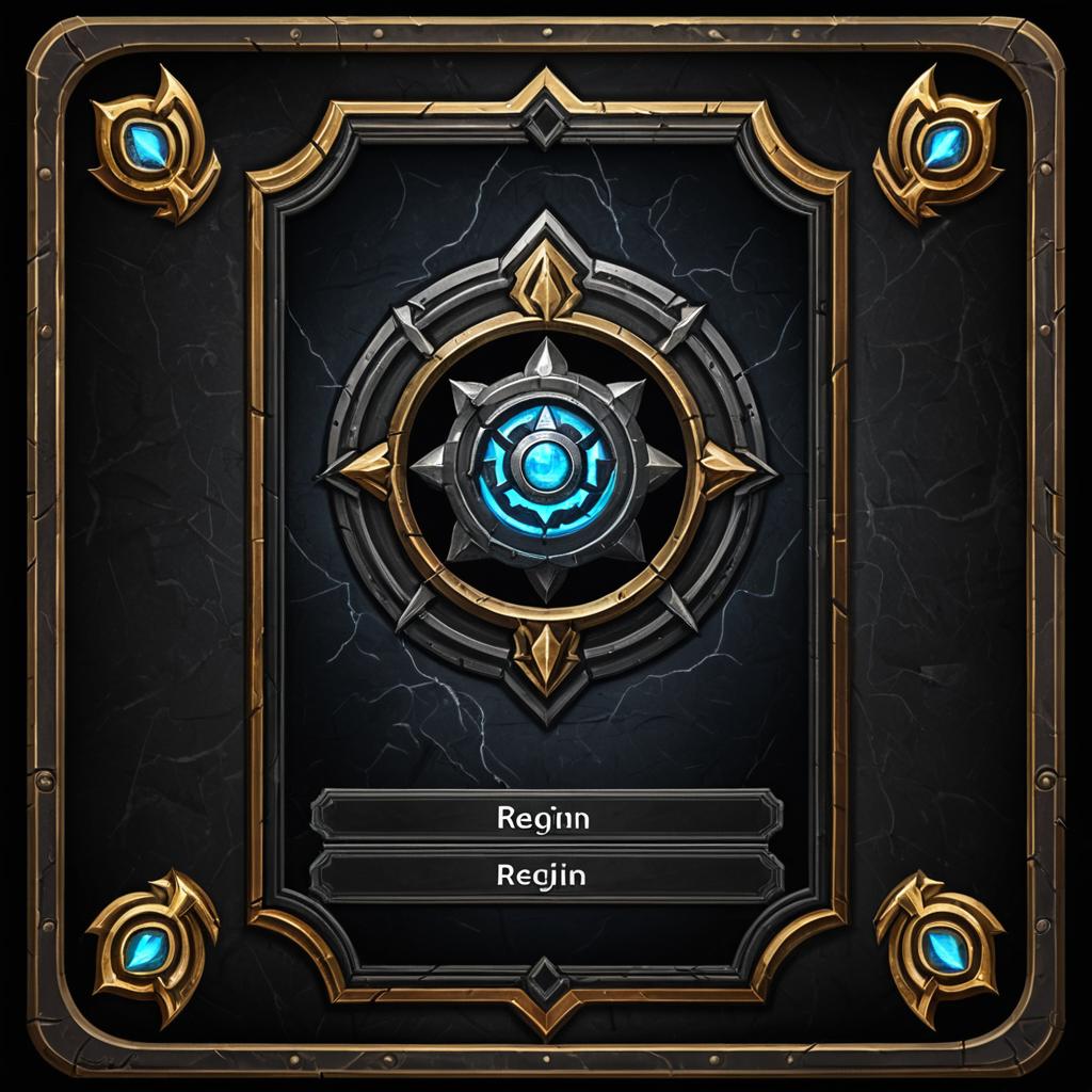 Symmetrical rectangle mtg game screen, black hearthstone rectangle login screen board, login screen rectangle board, rectangle play board artwork, transparent dark theme coloring, dark smoke background